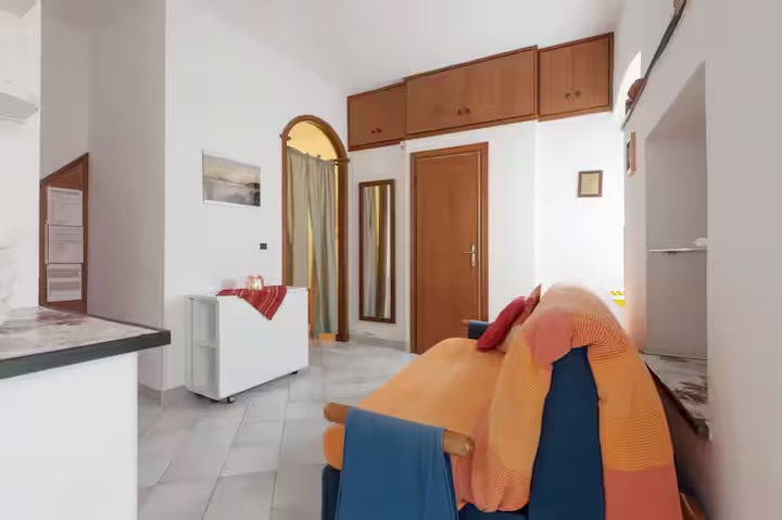 Esso può ospitare una coppia, ma anche una piccola famiglia o un piccolo gruppo di amici, dal momento che presenta un letto matrimoniale e anche un divano letto nel soggiorno.